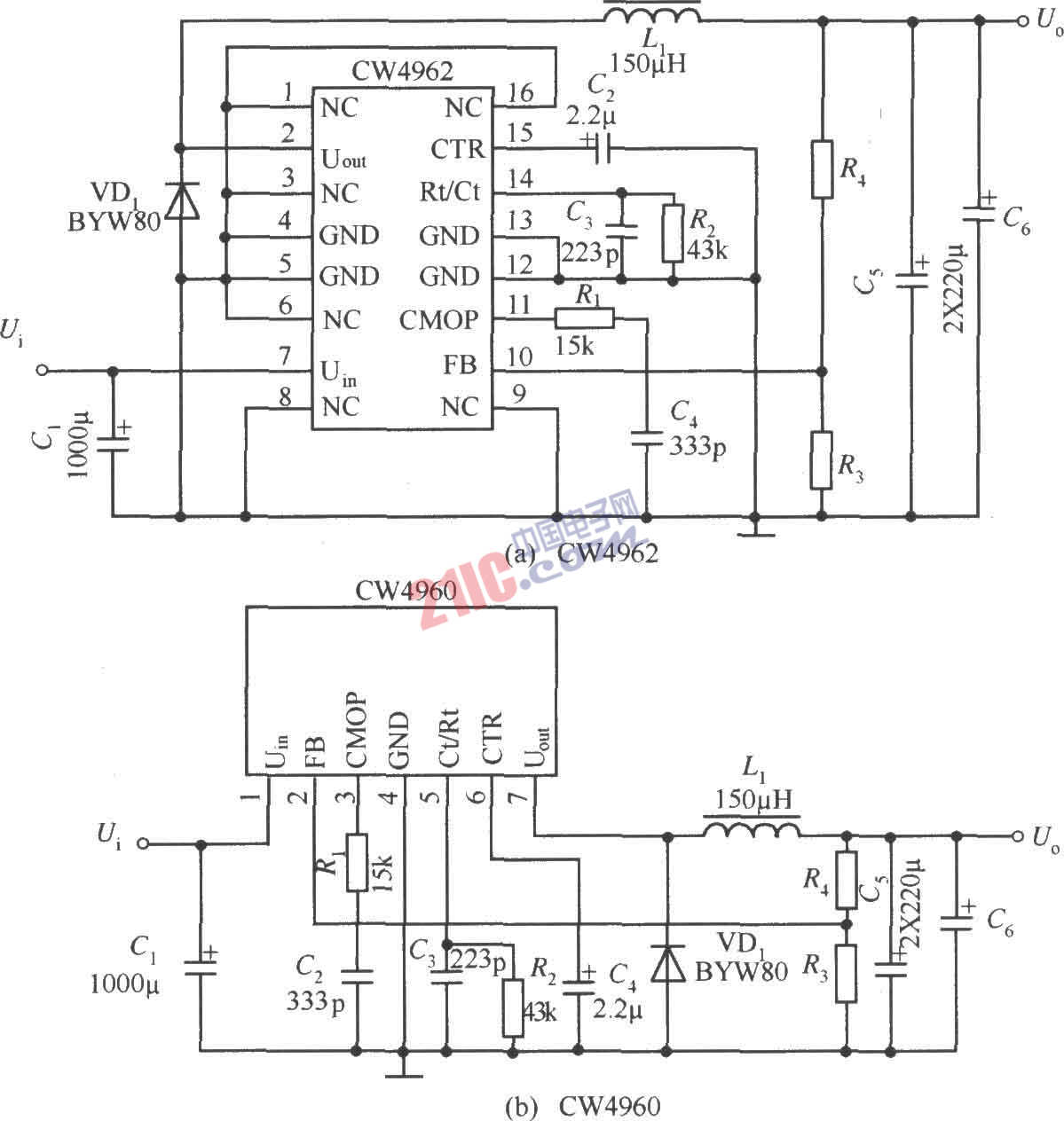 單片開(kāi)關(guān)集成穩(wěn)壓器CW4962/CW4960的典型應(yīng)用電路