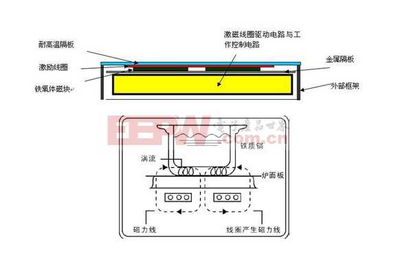 電磁爐主要利用電磁感應和渦電流熱效應的原理。因此,配合使用的鍋具必須具有鐵磁性。此種加熱方式的過程是,首先由電磁爐中的勵磁線圈中電流的變化在陳放鍋具的空間中產(chǎn)生交替變化的磁場,因電磁感應從而在鍋體上形成一股渦電流,最終這些電流的熱效應引起鍋具溫度的變化從而達到加熱的目的。以上便是電磁爐簡單的加熱原理,看起來并不復雜。然而,在實際的電磁爐中除了需要加熱,利用溫度傳感器對加熱過程進行控制、報警也是必不可少的。