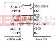 圖2 DM9000CEP與S3C2440的接口圖
