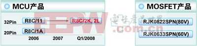 7 用于電動自行車的MOSFET和R8C/11 MCU系統(tǒng)結(jié)構(gòu)框 。
