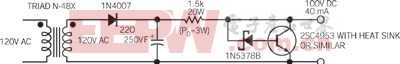 圖4 一個100V簾柵極電源可將一個普通三極管轉(zhuǎn)變?yōu)橐粋€升壓三極管