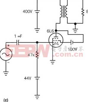 圖1 五極管(a)能輸出比三極管(b)大得多的功率,但采用升壓三極管配置除外(c)