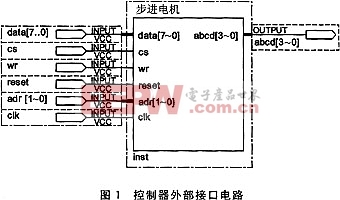 本文的創(chuàng)新點(diǎn)為將該步進(jìn)電機(jī)控制器的控制字和分頻系數(shù)映射在主控制器(DSP或單片機(jī)等)的內(nèi)存空間,控制時(shí)僅需對其進(jìn)行寫操作,使步進(jìn)電機(jī)的控制變得簡單方便;而且,可節(jié)省主控制器(DSP或單片機(jī)等)的外圍資源,減少板上負(fù)載。系統(tǒng)中可以加入電機(jī)運(yùn)行總步數(shù)控制寄存器及其電路、加速度寄存器及其控制電路等,打造一個(gè)更智能的步進(jìn)電機(jī)控制器。