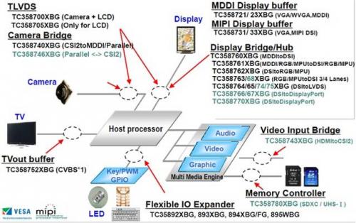 東芝推出了名為“移動(dòng)外圍器件(MPD)”的接口橋接芯片,可支持高速數(shù)據(jù)傳輸協(xié)議,比如 MIPI、LVDS、Display Port和HDMI。東芝的MPD不僅可以高速傳輸數(shù)據(jù),也可以橋接主要的處理器和不同接口的外圍設(shè)備。東芝也推出了廣泛的外圍設(shè)備產(chǎn)品組合,比如輸入輸出擴(kuò)展器件和SC卡控制器等。