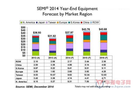 以地區(qū)市場(chǎng)來(lái)分析,臺(tái)灣、韓國(guó)及北美仍然是最大的半導(dǎo)體設(shè)備資本支出地區(qū),并呈成長(zhǎng)態(tài)勢(shì)。根據(jù) SEMI 的預(yù)估,2015年,臺(tái)灣半導(dǎo)體設(shè)備銷售預(yù)估將仍成長(zhǎng)28.1%,達(dá)到123億美元,將再度蟬聯(lián)全球第一大市場(chǎng),SEMI臺(tái)灣總裁曹世綸表示:“臺(tái)灣的半導(dǎo)體投資在晶圓代工、記憶體以及封測(cè)廠商的帶動(dòng)下,持續(xù)穩(wěn)健成長(zhǎng),將進(jìn)一步鞏固臺(tái)灣在全球半導(dǎo)體產(chǎn)業(yè)(電子元器件產(chǎn)業(yè))的領(lǐng)導(dǎo)地位。”