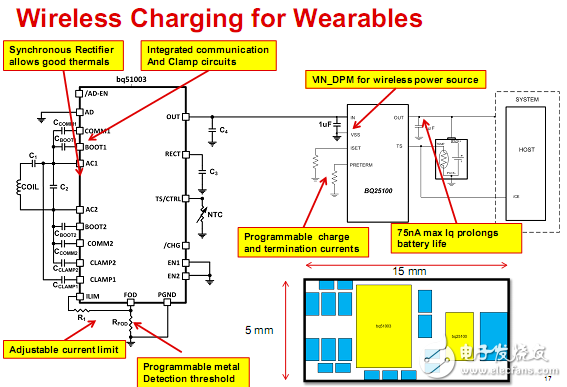 對(duì)于普通消費(fèi)者來(lái)說(shuō),可穿戴設(shè)備的可用性與其用戶體驗(yàn)直接相關(guān),但影響其可用性最主要的因素就是功耗。TI中國(guó)區(qū)市場(chǎng)經(jīng)理文司華表示,要提高可穿戴設(shè)備的可用性,首先應(yīng)從電池充電器入手。