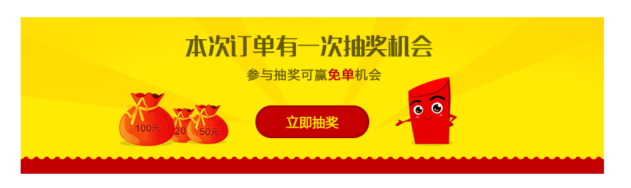 每付款成功一個(gè)訂單,可獲得一次抽獎(jiǎng)機(jī)會(huì),獎(jiǎng)品為代金券: