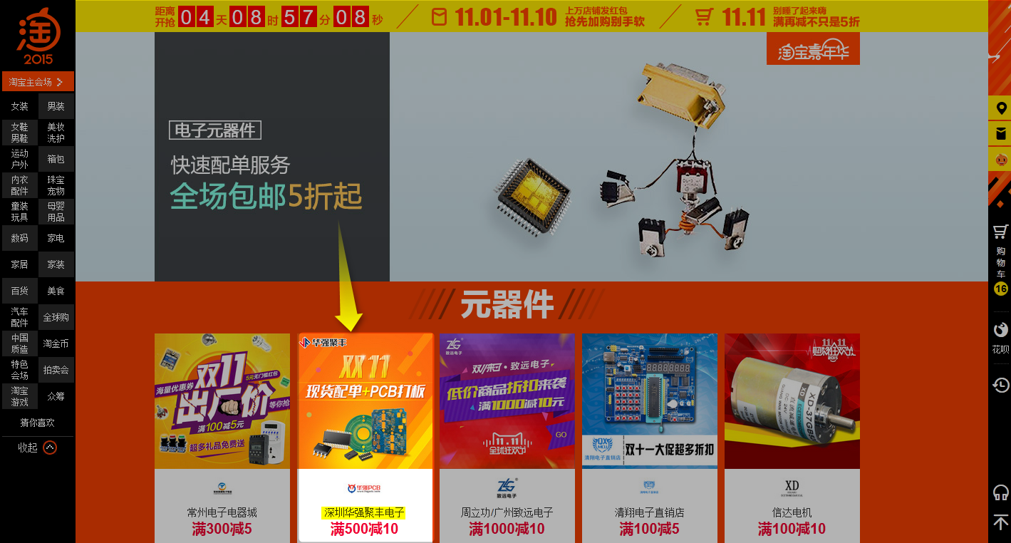 2015年,華強(qiáng)芯城與淘寶官方合作,推出雙十一淘寶特別活動(dòng),在開(kāi)辟新的業(yè)務(wù)的同時(shí),也開(kāi)啟元器件行業(yè)與淘寶官方合作的首例。