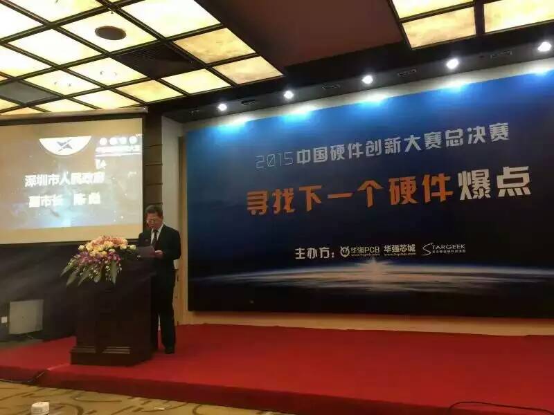 2015年11月18日,“2015中國硬件創(chuàng)新大賽”總決賽在深圳會展中心隆重舉行,出席今天大賽的領(lǐng)導(dǎo)有深圳市市委常委福田區(qū)委書記張文同志,深圳市人民政府副市長陳彪同志,華強集團執(zhí)行總裁方德厚先生,陳彪同志和方德厚先生更分別為大賽做了致辭。