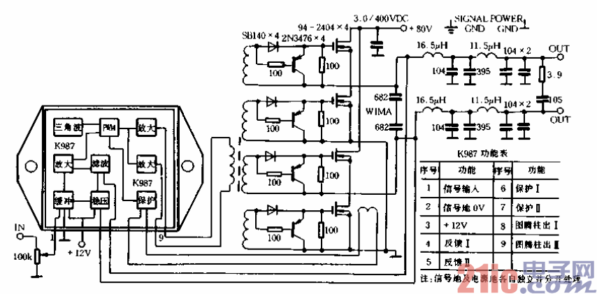 經(jīng)解剖,其原理如圖7-17所示6四只金封粗腳的超大功率場(chǎng)效應(yīng)管安裝在精工銑制的鍍鉻紫