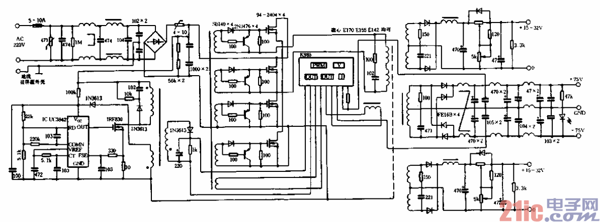 型號(hào)為EA40A906的超大功率場(chǎng)效應(yīng)全橋組件為日本TDK產(chǎn)品,得到美國(guó)UI一的認(rèn)證。