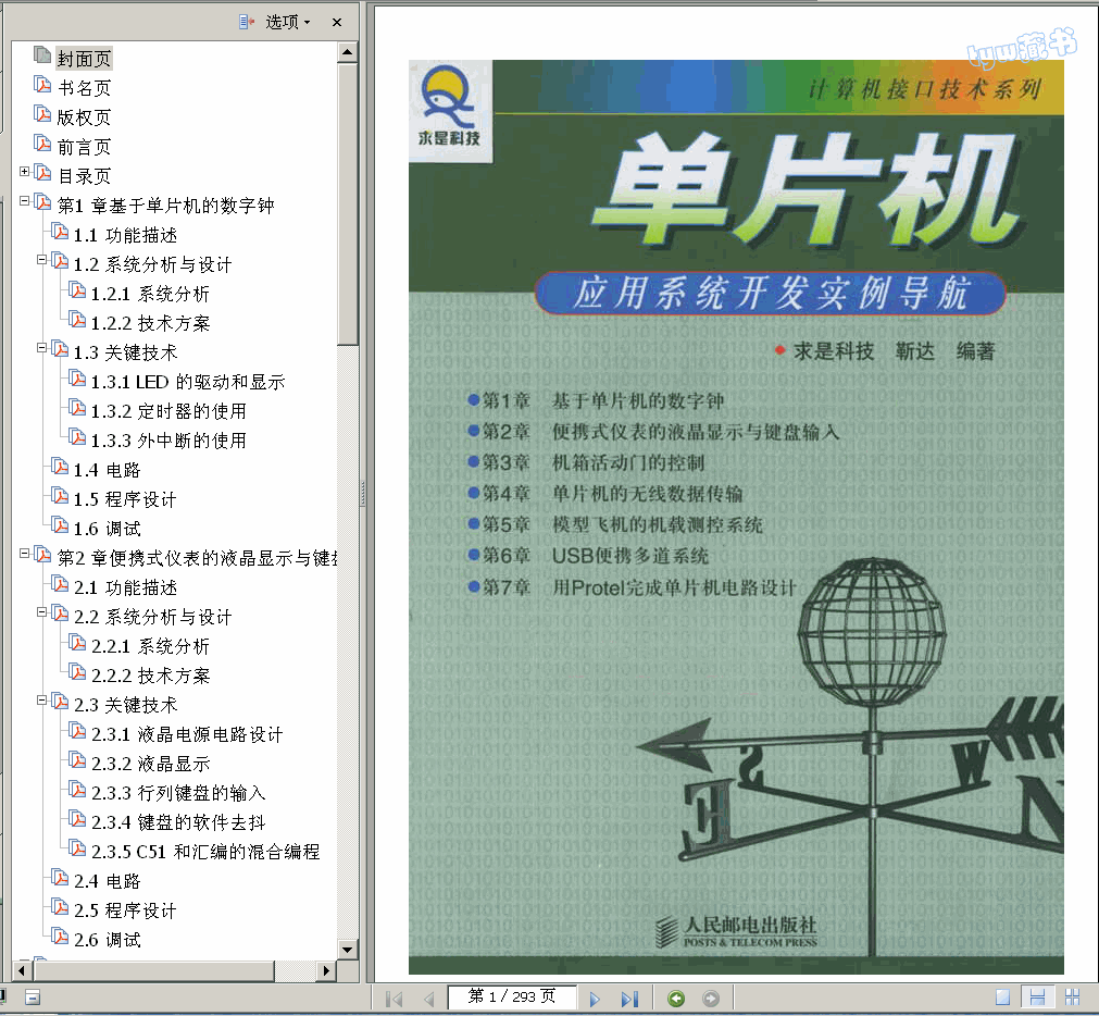 俺自已整的pdf書簽,tyw藏書版,哈哈單片機應用系統(tǒng)開發(fā)實例導航 作者:靳達 293頁 81.0M.part1.rar(19.53 MB, 下載次數(shù): 1587)2012-11-18 18:02 上傳點擊文件名下載附件